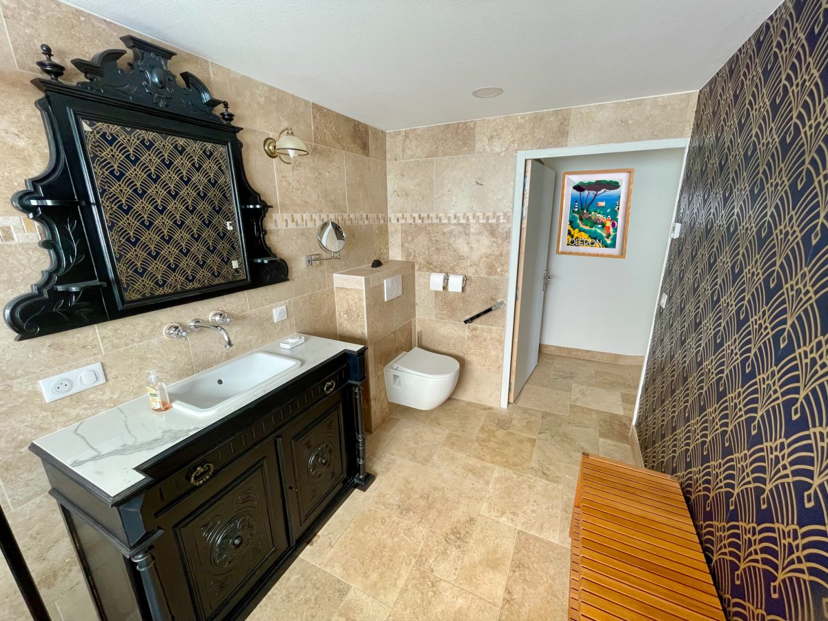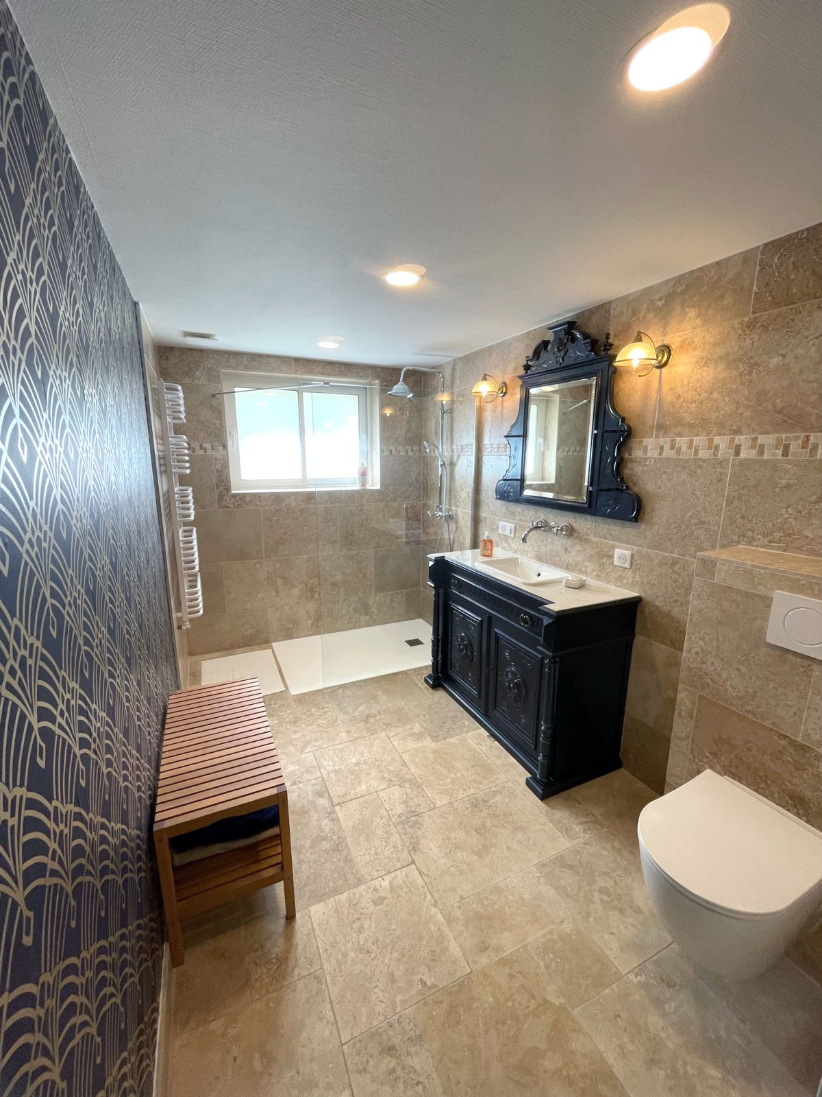 - une grande salle de bain privative avec une douche à l'italienne et des toilettes suspendues.